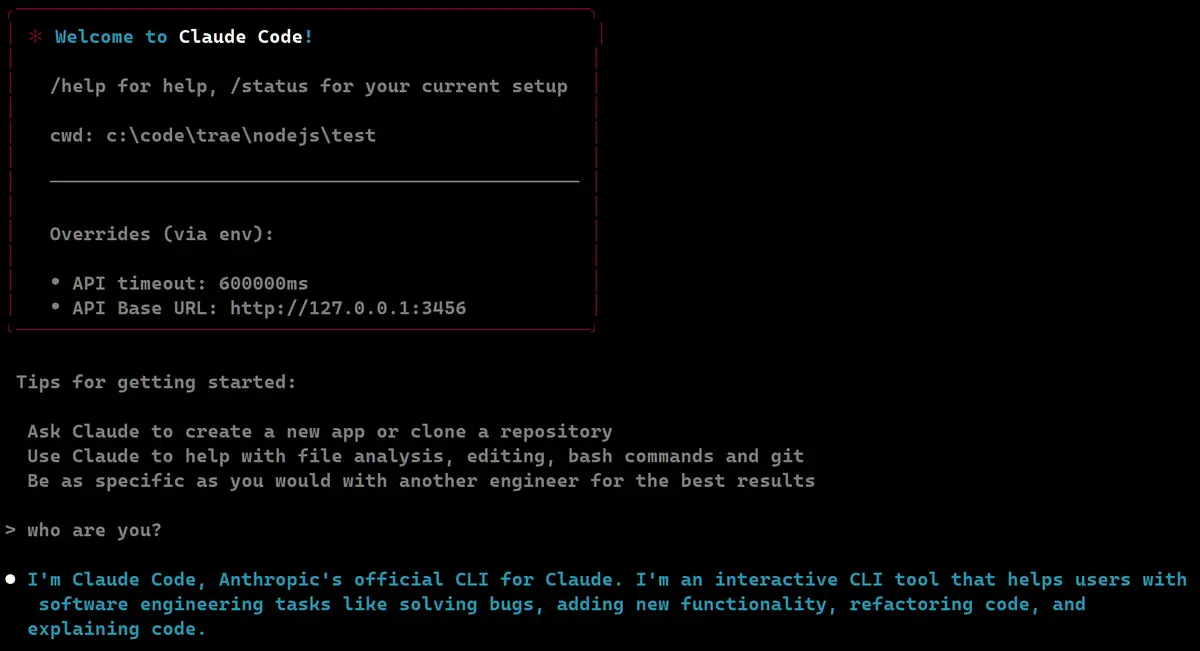 收到 I'm Claude Code 的回复,说明启动成功了。