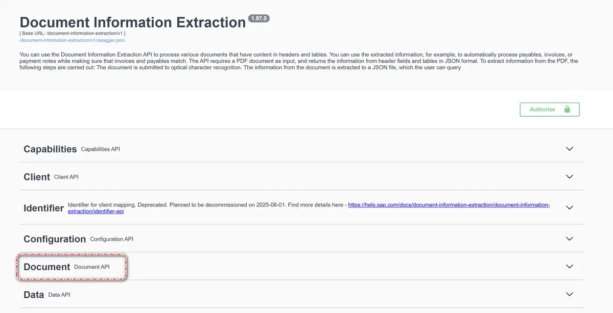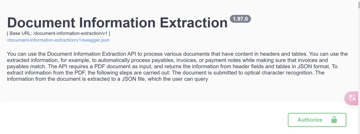 用浏览器访问这个 url,能进入 SAP BTP Document Information Extraction 的 API 调用控制台,相当于一个专属的浏览器版本的 Postman,可以在浏览器里通过 API 的方式执行文档信息提取的各种操作。