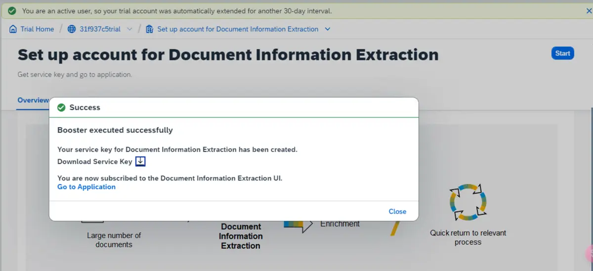 短短数秒之后即可完成配置,点击 Go to Application 进入 Document Information Extraction 的控制台。