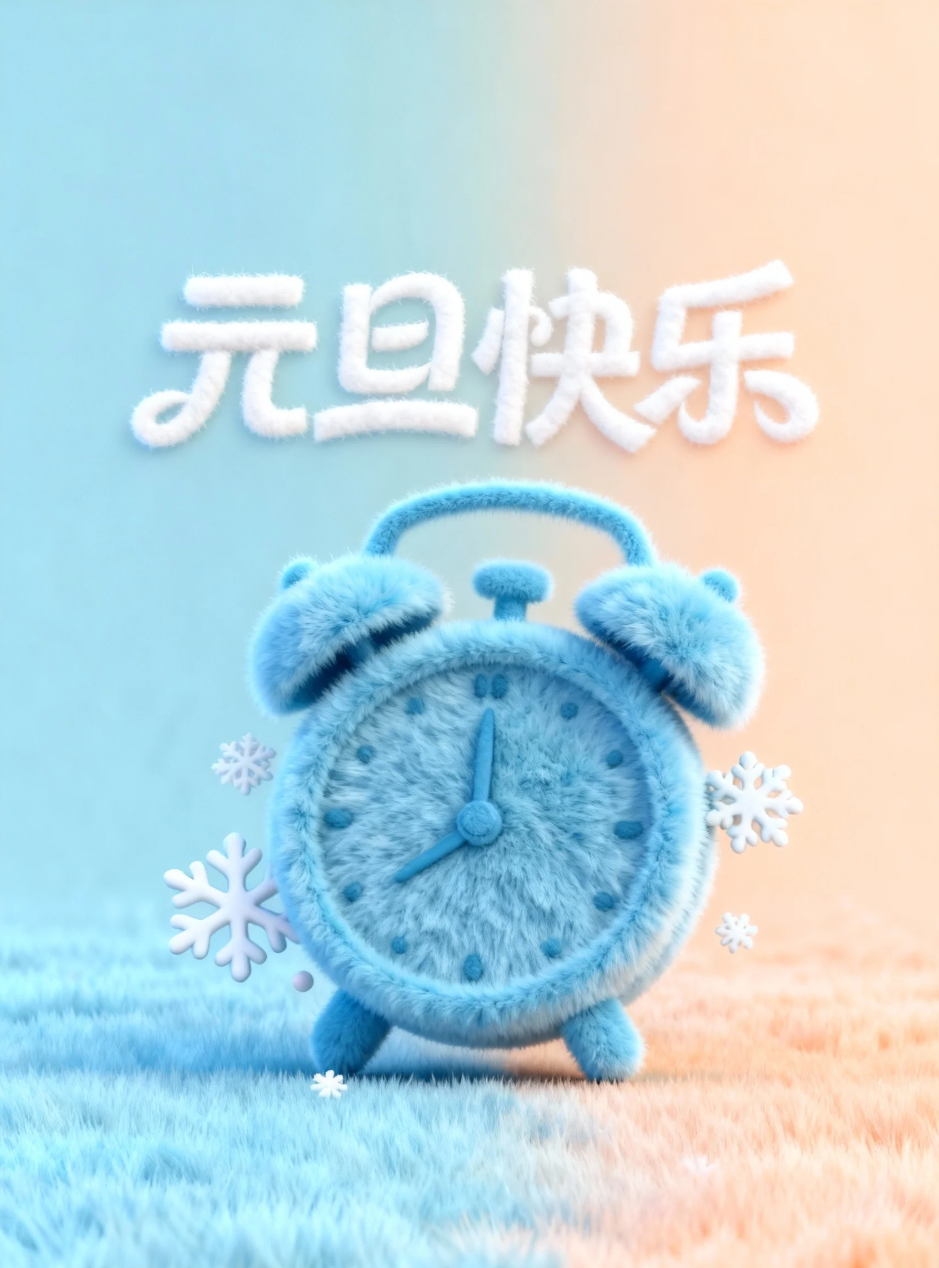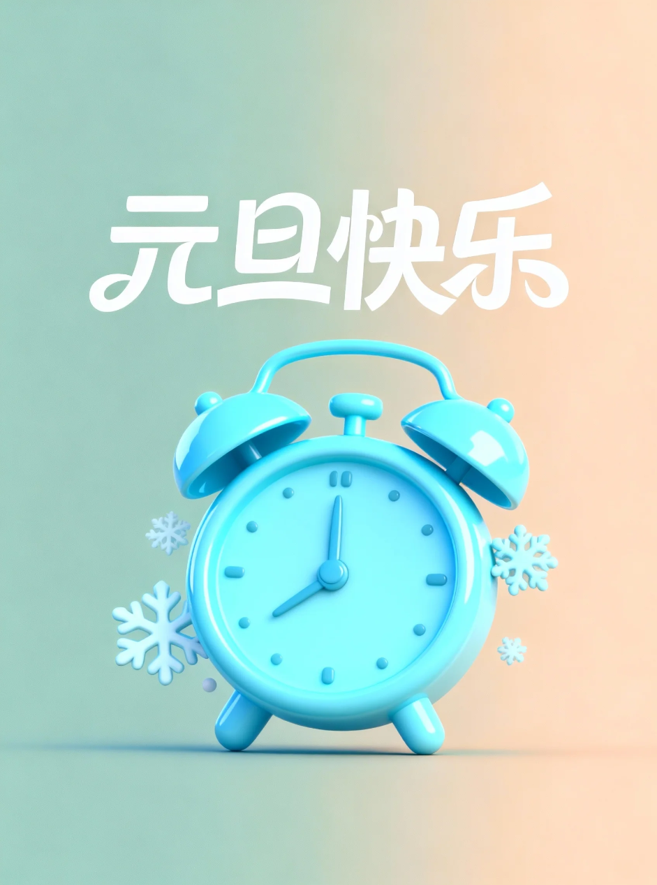 - 节日适配:替换圣诞元素为元旦(如“钟表”代替“圣诞树”),保持温暖、喜庆调性,强调高饱和度颜色增强节日感。