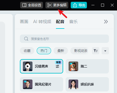 4、如果还需要优化或调整节奏,修改配乐,点击更多编辑,系统将把所有内容一键到入到剪辑面板中