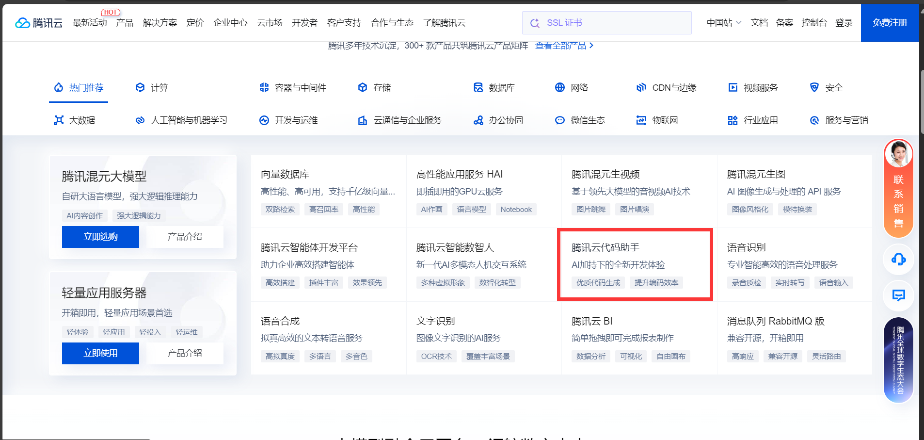 访问腾讯云官网:打开 腾讯云官网,找到腾讯云代码助手的入口。