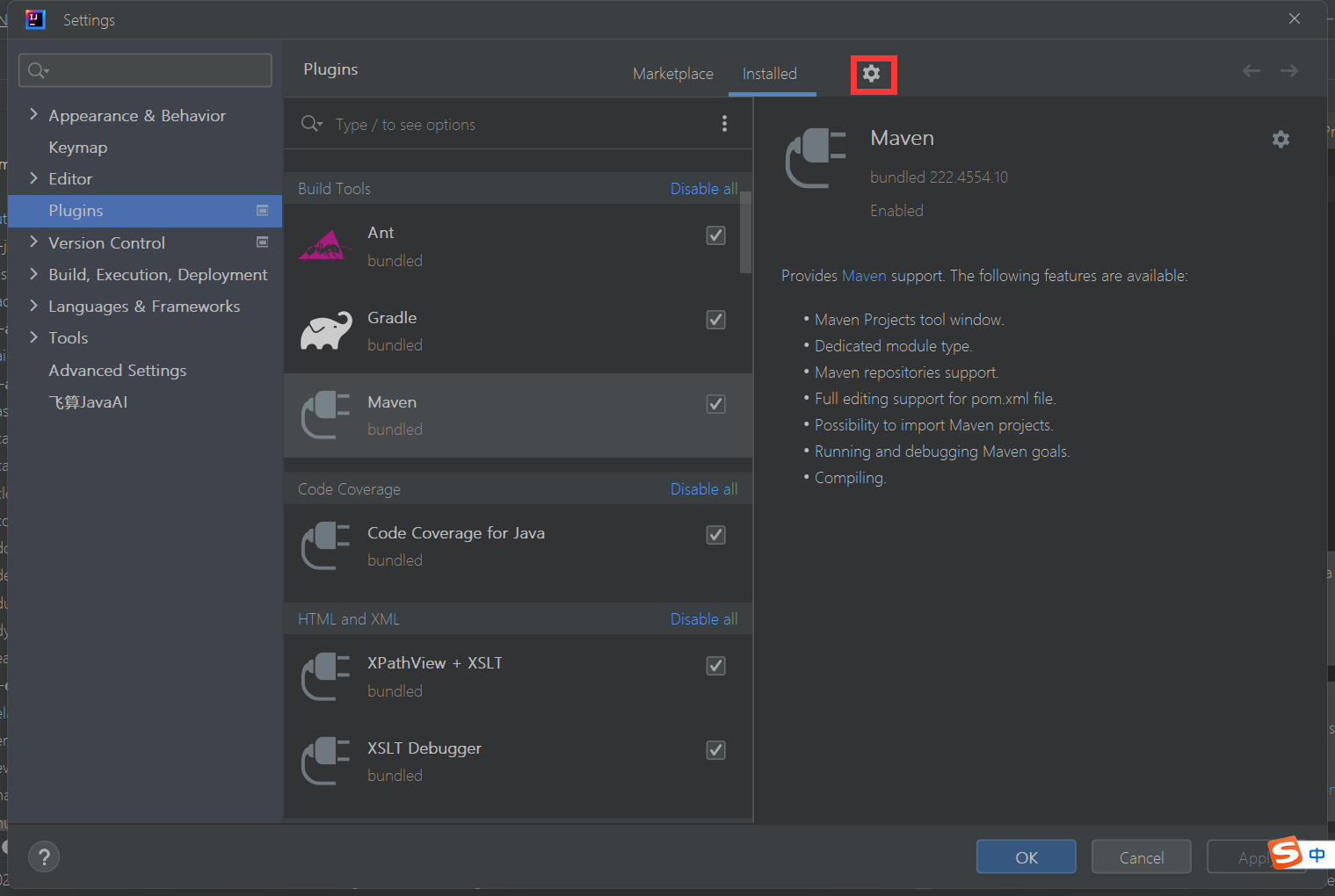 打开IDEA设置:在IDEA中找到 Settings,选择插件管理图标。