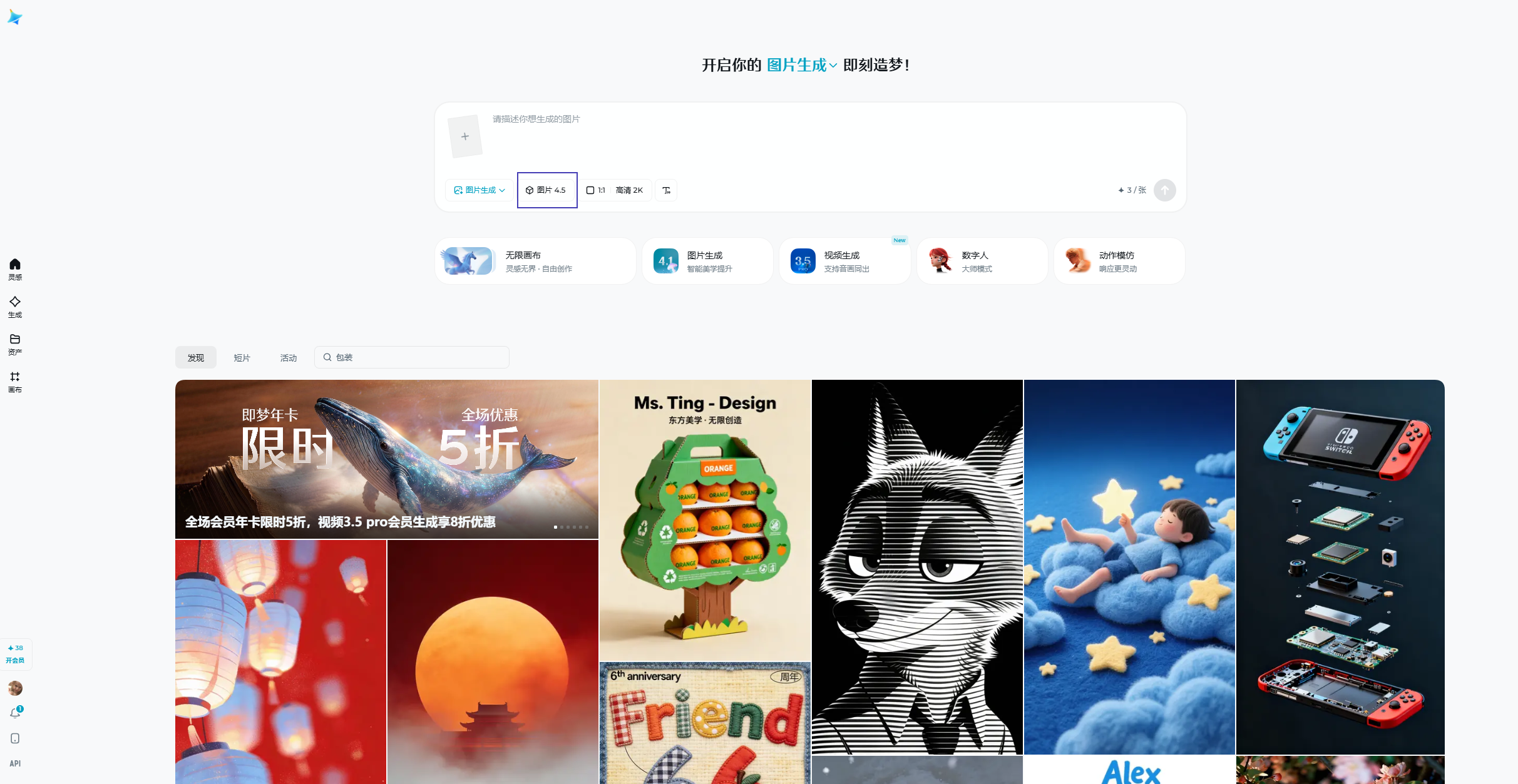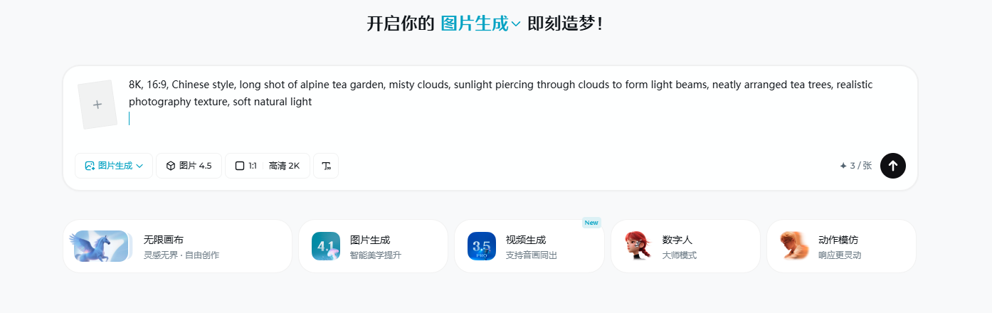 - 点击首页「图片生成」,进入创作界面;