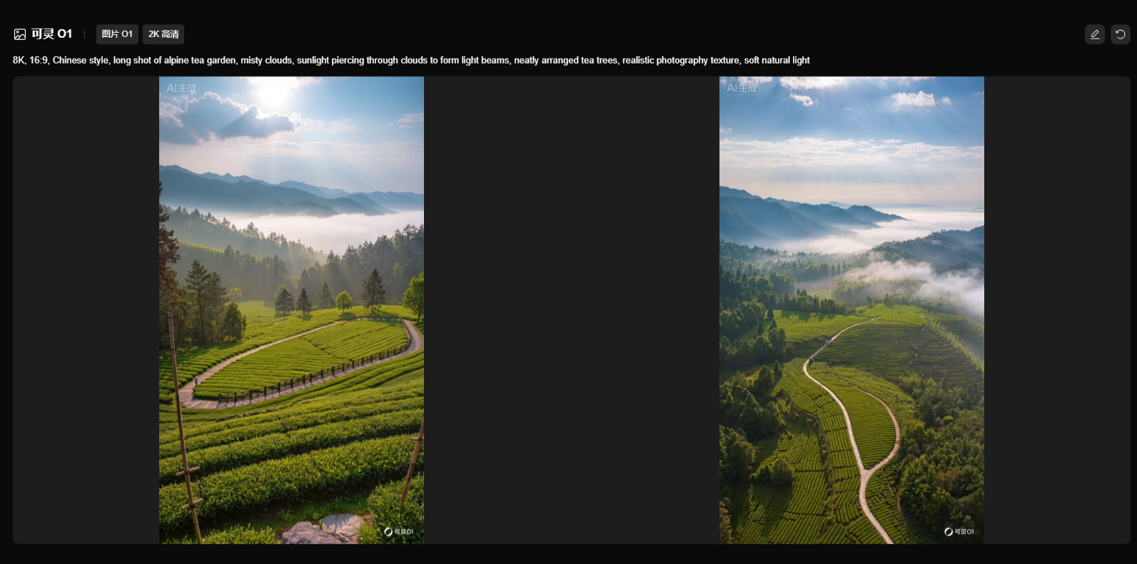- 提示词精准:避免模糊表述(如“好看的茶山”),要具体到“高山云雾、阳光光束”;