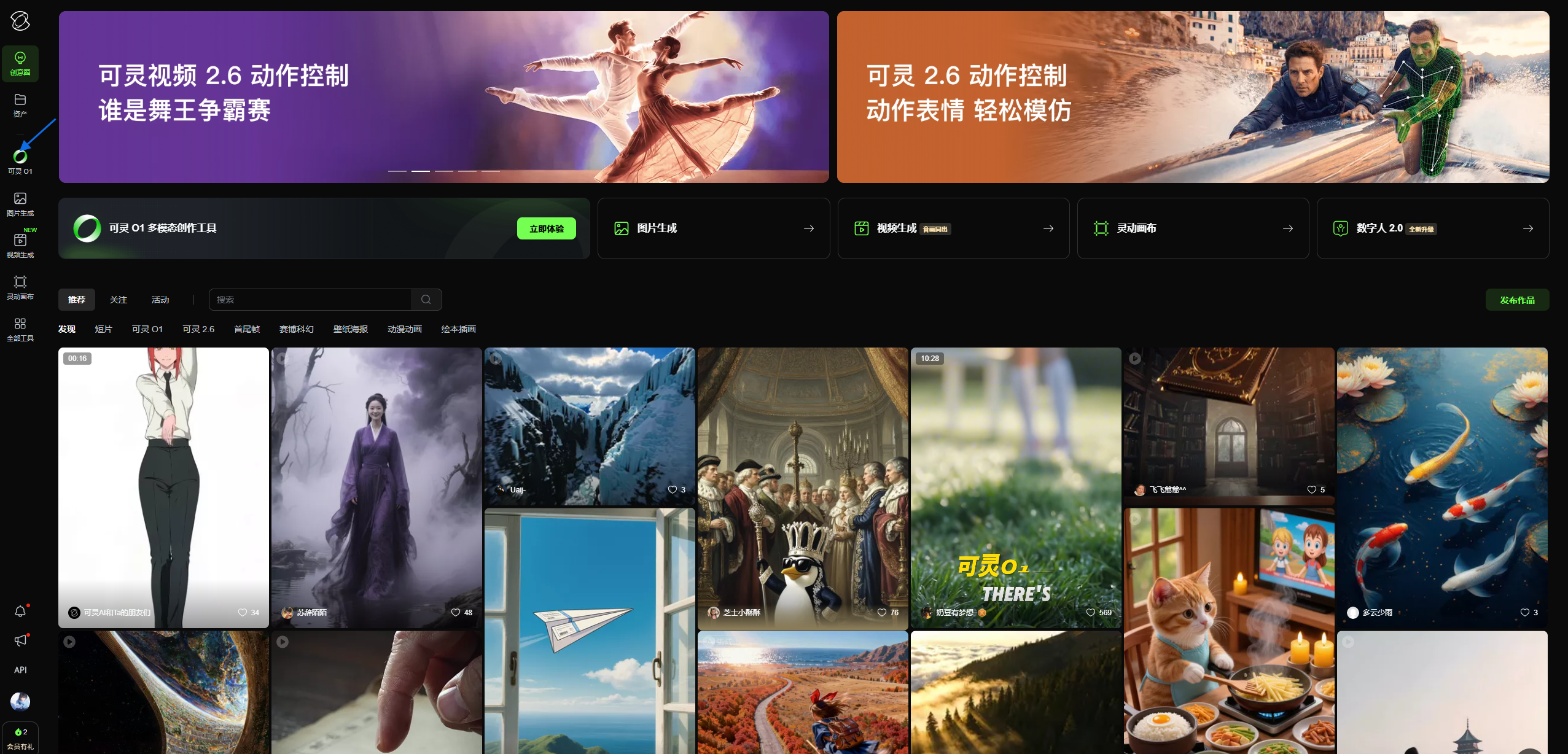 打开可灵官网:https://app.klingai.com/cn/omni/new