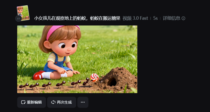3、点击生成,等 2-3 分钟 / 个,所有分镜视频就搞定啦!要是觉得动态不够,就加 “轻微弹跳感”“闪烁小光斑”,更讨娃喜欢~
