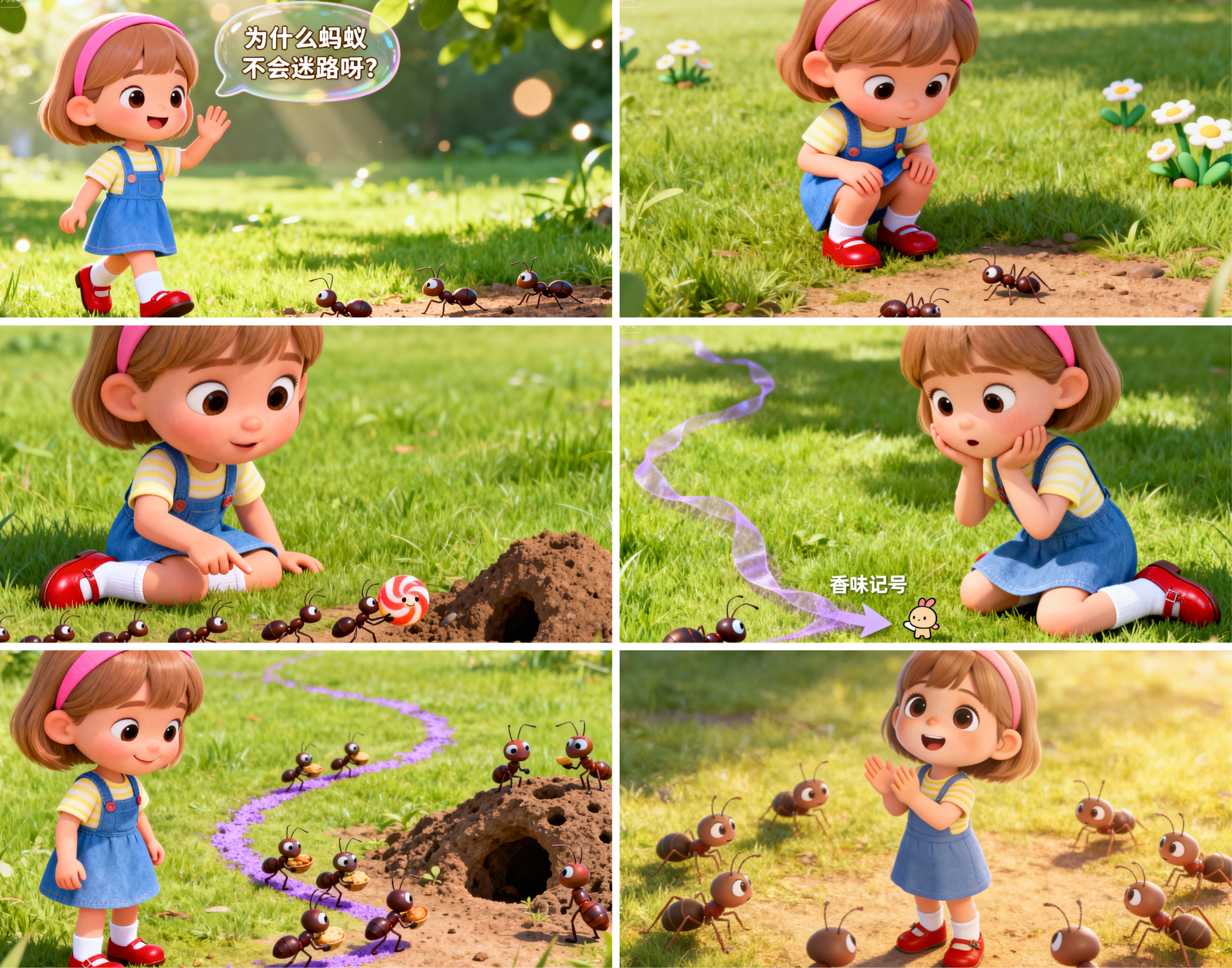 (0-5 秒 开篇点题)小朋友们好!今天我们要问:为什么蚂蚁不会迷路呀?