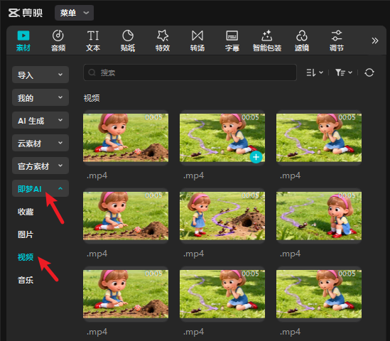 1、打开剪映,导入所有即梦生成的分镜视频,按脚本顺序排列好