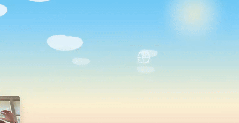 Create a browser-based balloon shooter with a sky background, using the webcam to track a user’s hand and control an on-screen pointer.