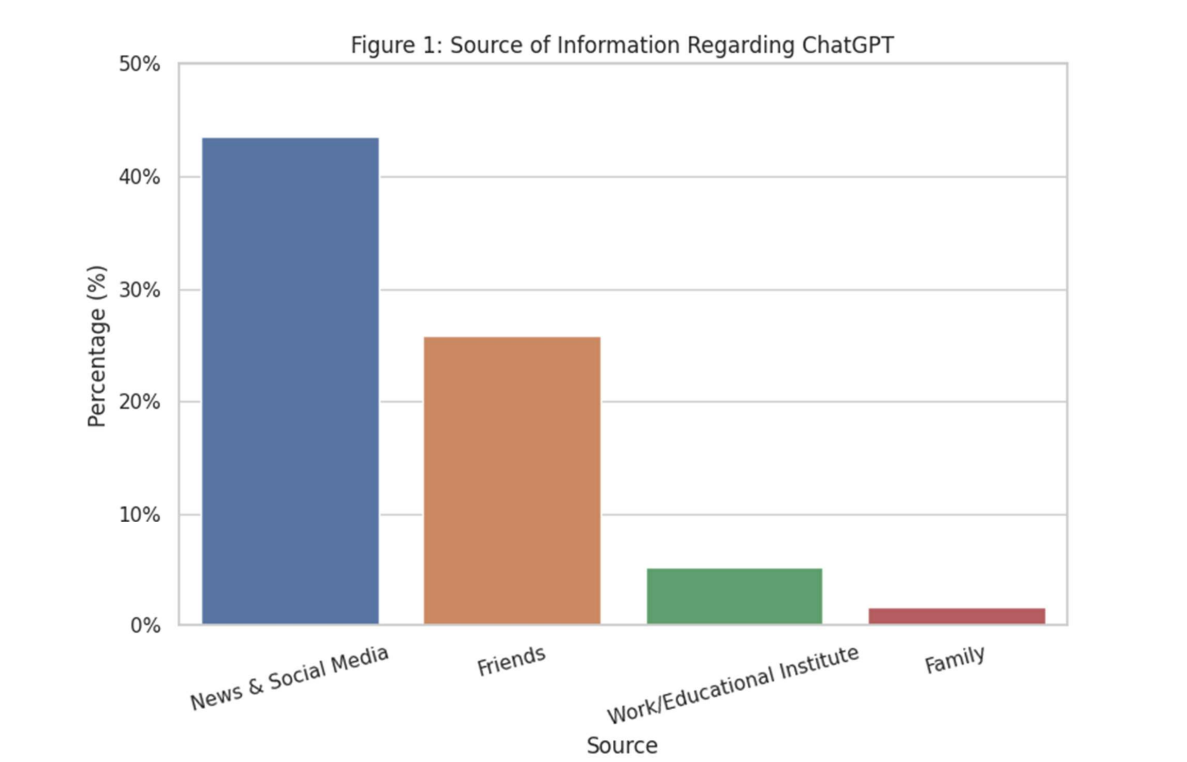 图1:超40%参与者通过新闻和社交媒体了解ChatGPT