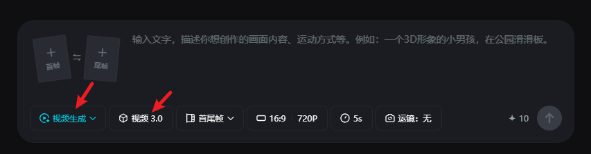 2、按时间顺序上传图片:先传第 1 张图当 “首帧”,第 2 张图当 “尾帧”,输入 “衔接提示词”