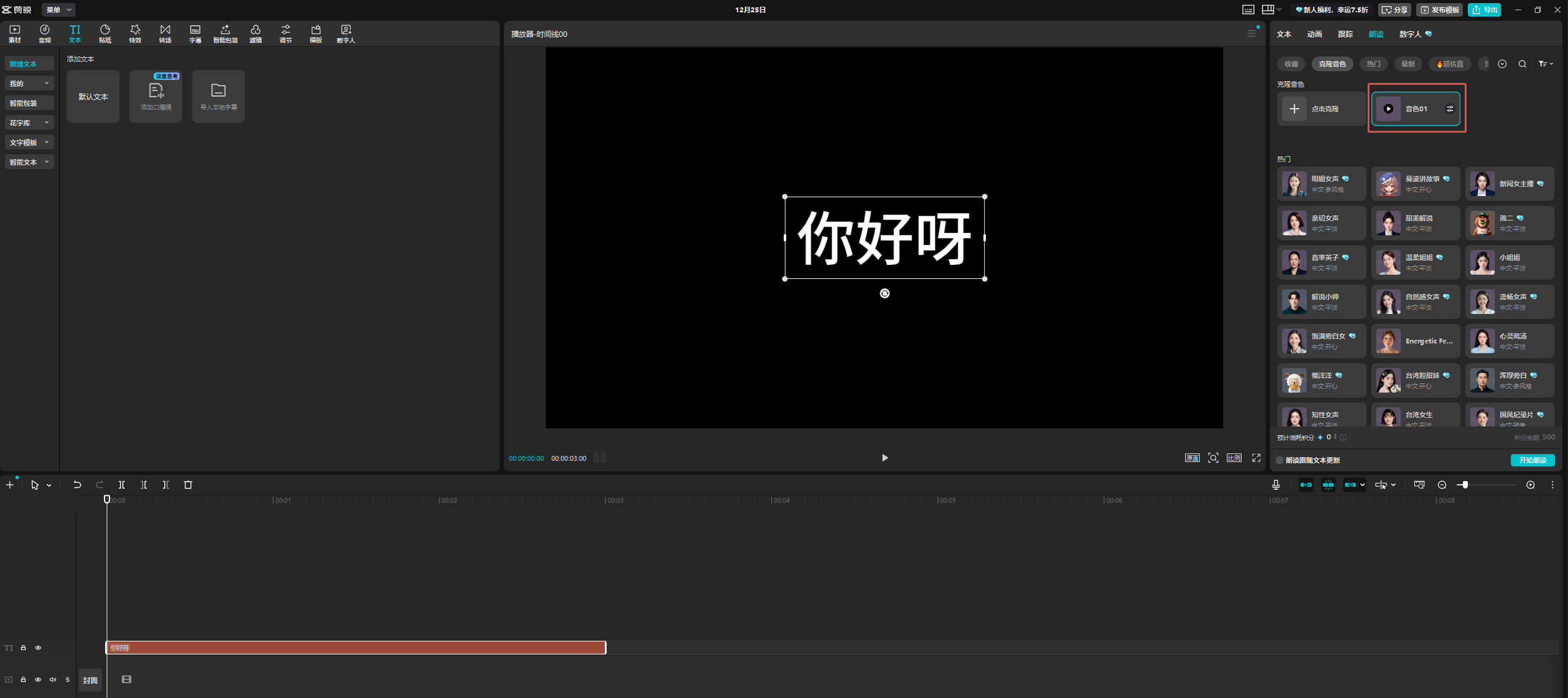 点击「添加文本」,输入你要朗读的内容。