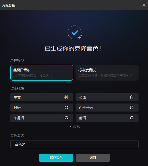 录制完成后,剪映会自动生成你的专属 AI 音色