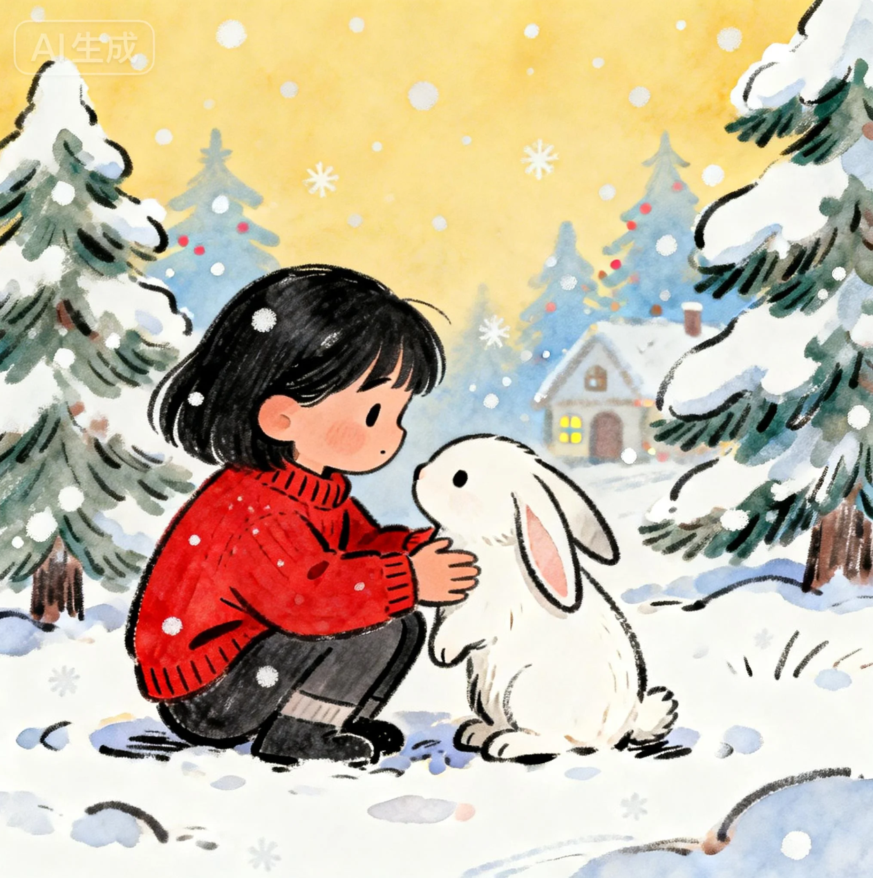 - 简洁与平衡规律:总字数控制在50-100字,避免冗长。构图强调“简洁突出”——主角居中,留白占比至少40%,营造明信片般的舒适感。规则是:融入应用场景(如“适合儿童绘本/圣诞广告”)能让AI模拟目标用途;重复强调“不要过度细节”可防止写实化,确保松散、速写般的童趣。