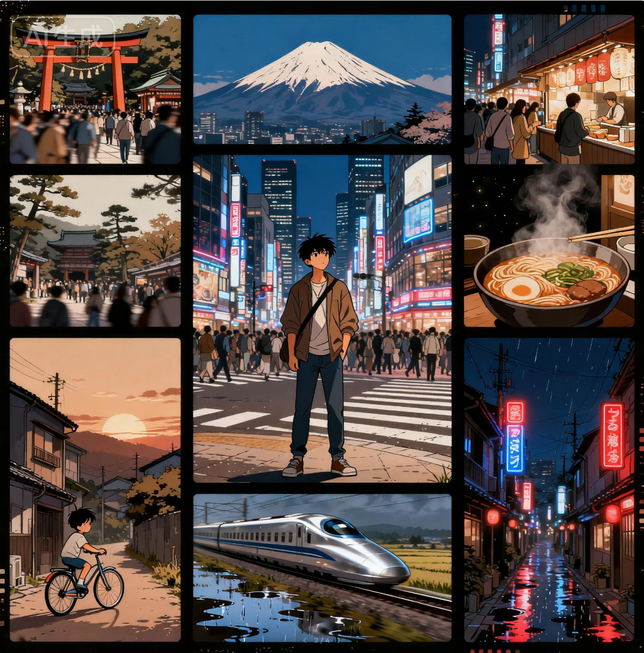通过分析并优化一组高效的AI提示词模板,我们将教你如何生成动漫风的数字海报,这些海报以GTA V式的漫画网格布局为核心,完美捕捉欧洲、亚洲等城市的“都市生活”精髓,帮助你的书籍在亚马逊或京东等平台脱颖而出。