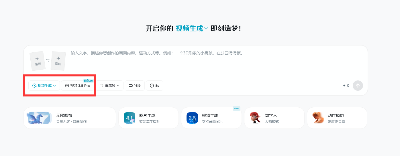 2.找到【视频生成】功能模块,选择【视频3.5pro】