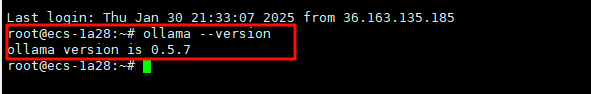 此命令将自动下载并执行 Ollama 安装脚本,在安装过程中,Ollama 会自动配置所需的服务并完成安装。安装完成后,你可以通过以下命令检查 Ollama 是否已成功安装: