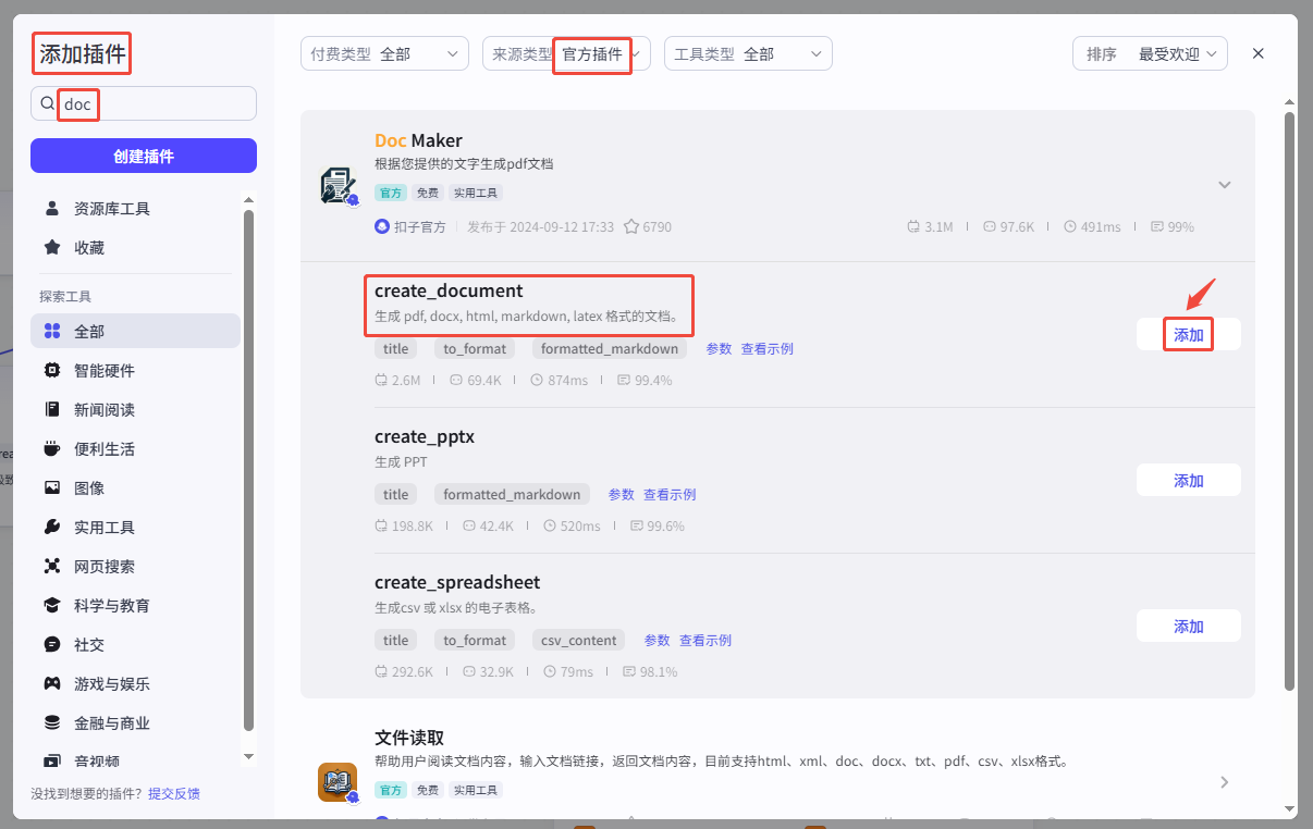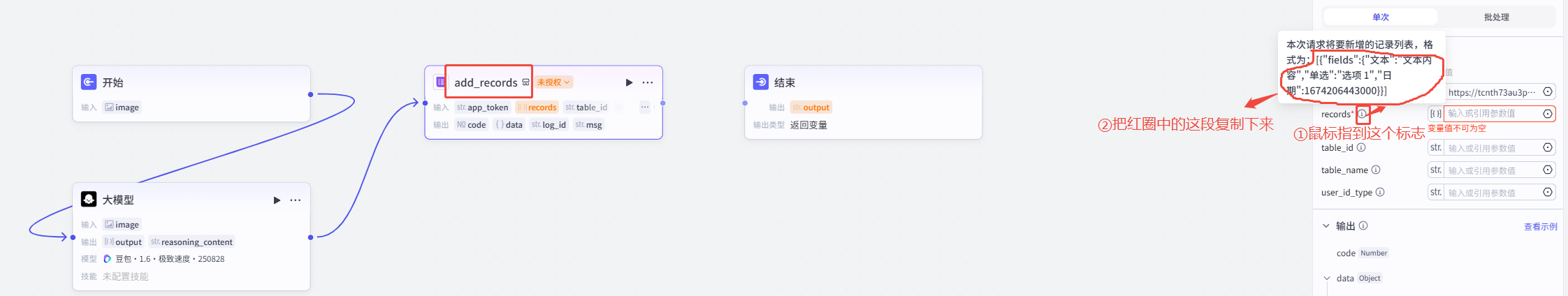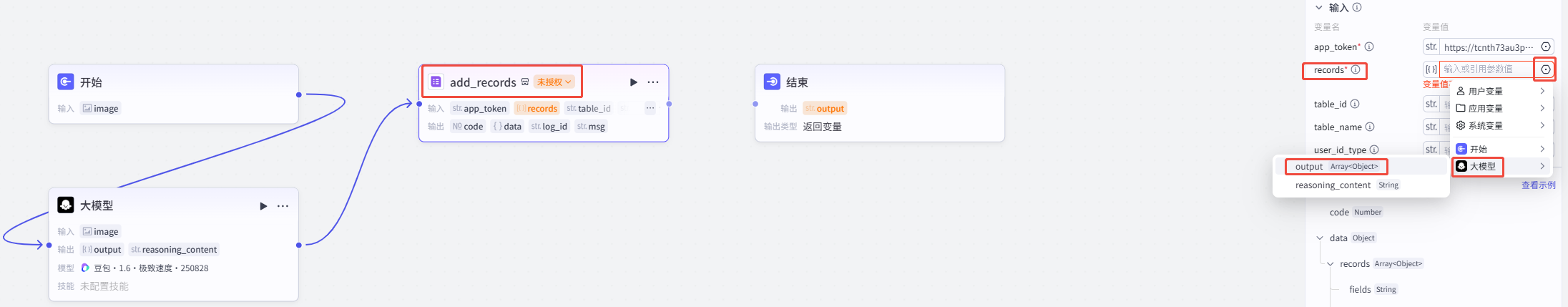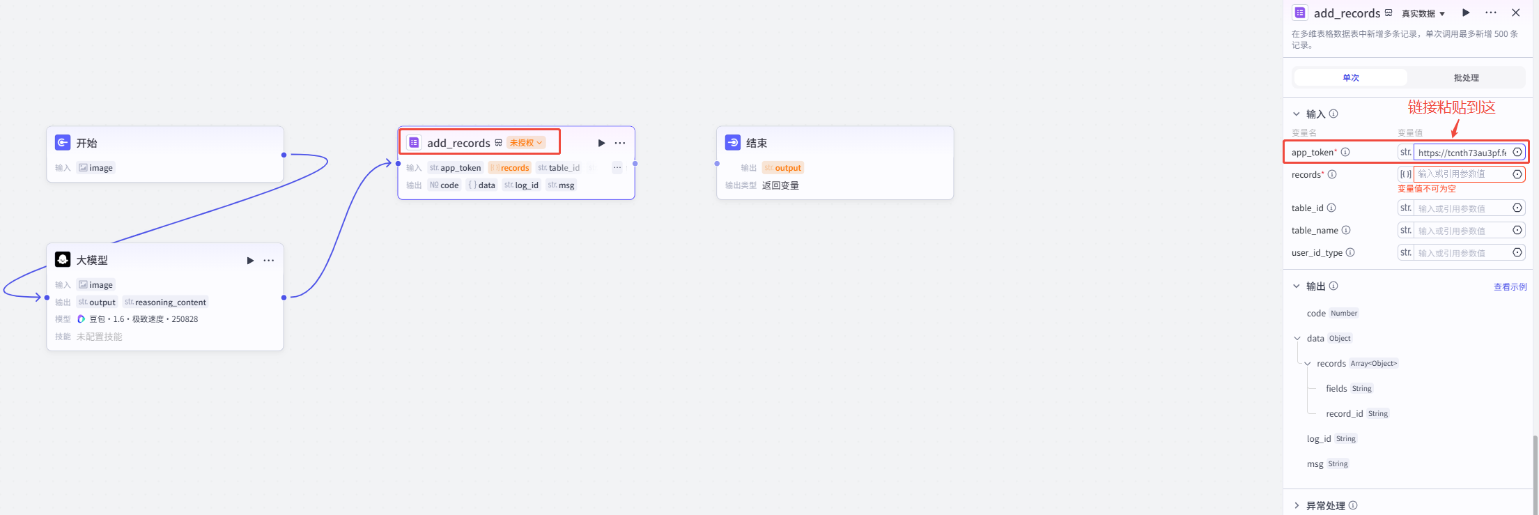 🔍 回到扣子工作流中,新建“add records ”插件节点: