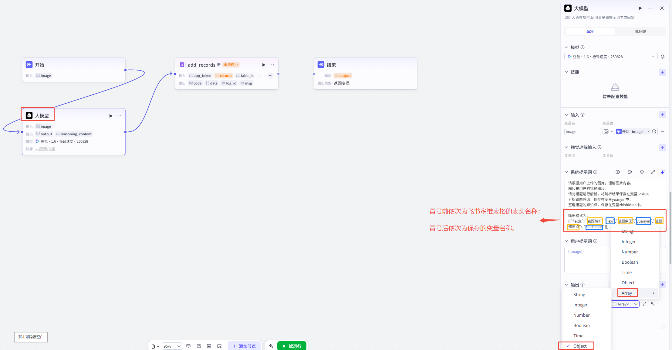 🧠 添加【大模型】节点(支持图片理解的模型,如豆包 1.6)