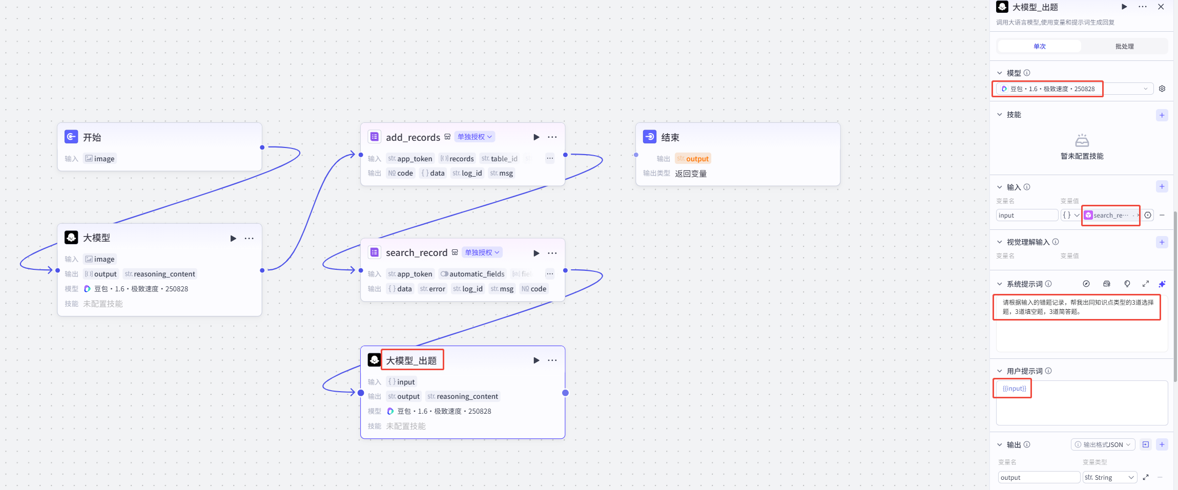 - 描述:根据上传的错题图片,理解、解析后,记录在多维表格中,并能够进行衍生出题。