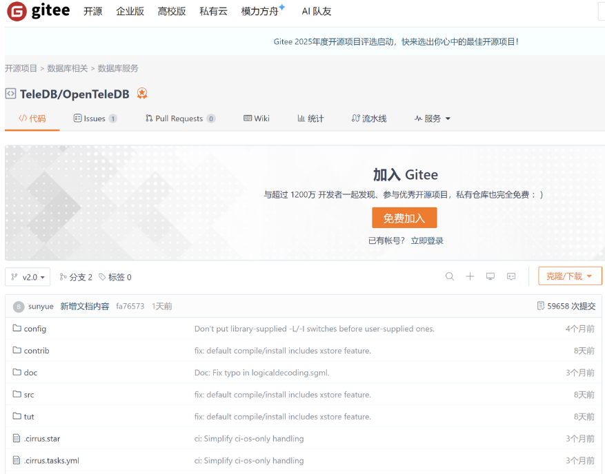 - 项目官网:https://openteledb.ctyun.cn/open/index