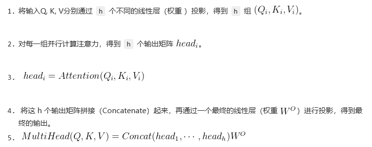多头注意力(Multi-Head Attention): 与其只执行一次注意力计算,多头注意力机制通过将Q、K、V分别进行多次(h次,即头的数量)独立的线性投影,并行地执行 h 次缩放点积注意力计算 。这使得模型能够从不同的表示子空间(representational subspaces)共同学习信息。