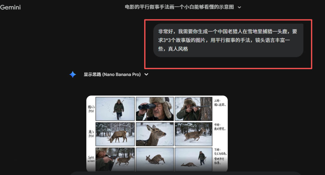 我再说一次这个方法就是NN宫格故事板,比方下面的提示词: