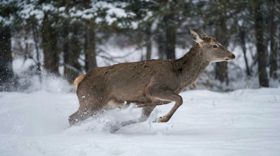 第二个镜头,展现鹿在奔跑: