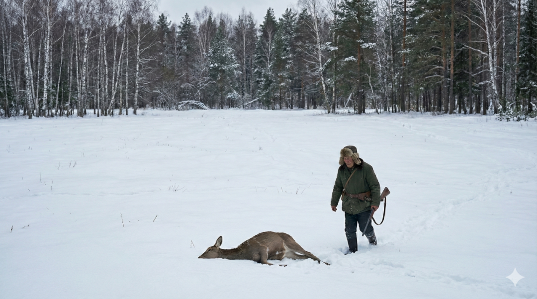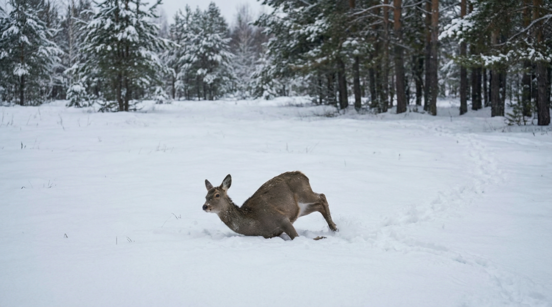镜头4:鹿中枪倒地。