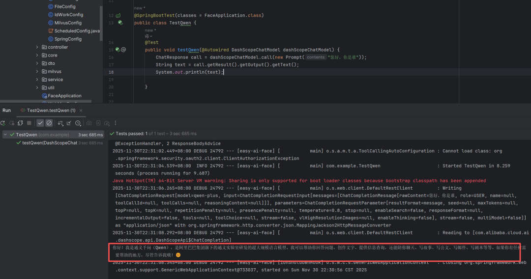 ChatResponse call = dashScopeChatModel.call(new Prompt("您好,你是谁"));