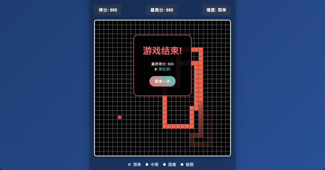 prompt:帮忙开发一个贪食蛇的小游戏,功能越完善越好