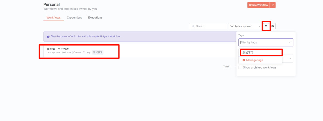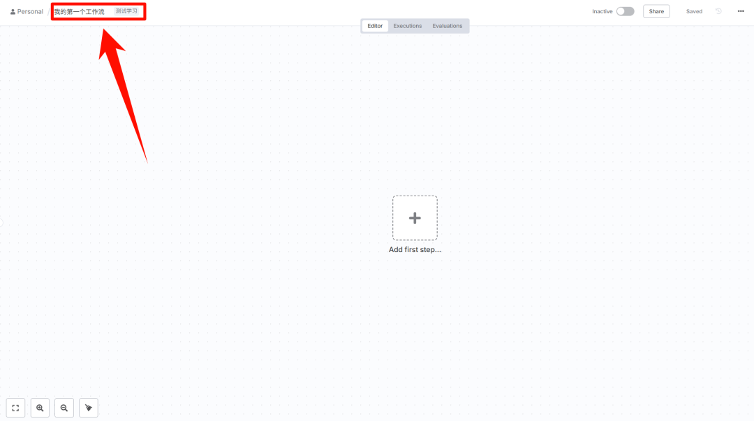 创建工作流后,在右上角输入 workflow 名称和 tag,方便检索。