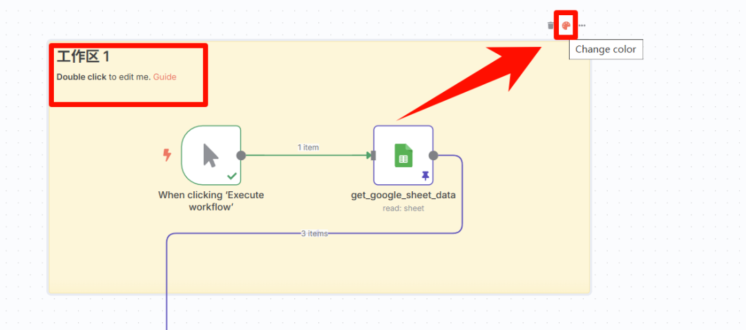 移动和缩放后,可放置在节点后方,高亮一块区域,放置鼠标在区域上,右上角图标可以改变颜色。