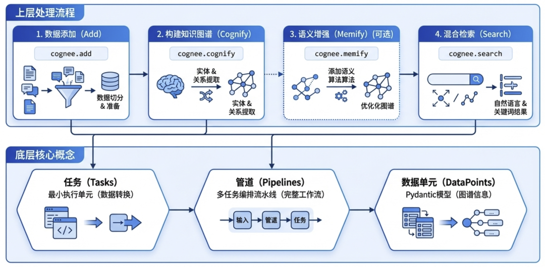 Cognee 的底层由以下核心组件组成: