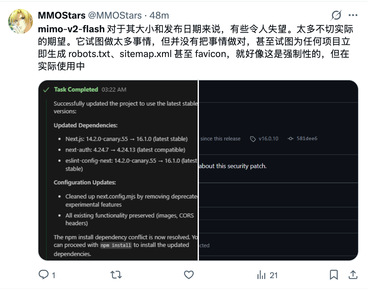 说实话我是看不懂,就是吃了一个瓜,有 Kimi 工程师锐评一波后被官方账号拉黑了,小米大模型团队格局属实有点小了