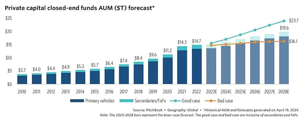 全球私人资产管理规模在多年扩张后,已停留在约$20万亿美元的平台期。
