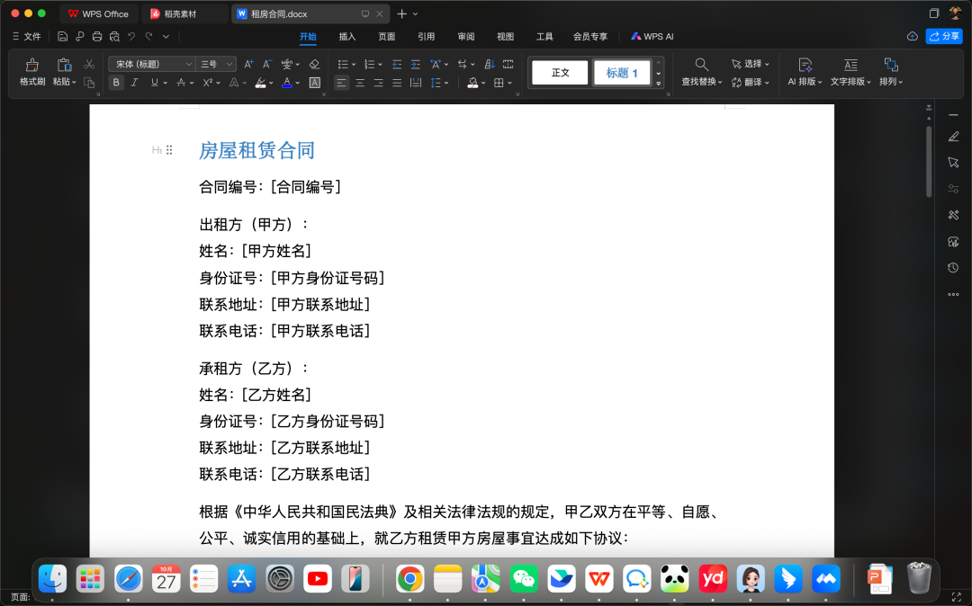 最后点击在线文档地址下载后打开,可以看到这个租房合同模版格式,支持了标题和换行的样式解析。
