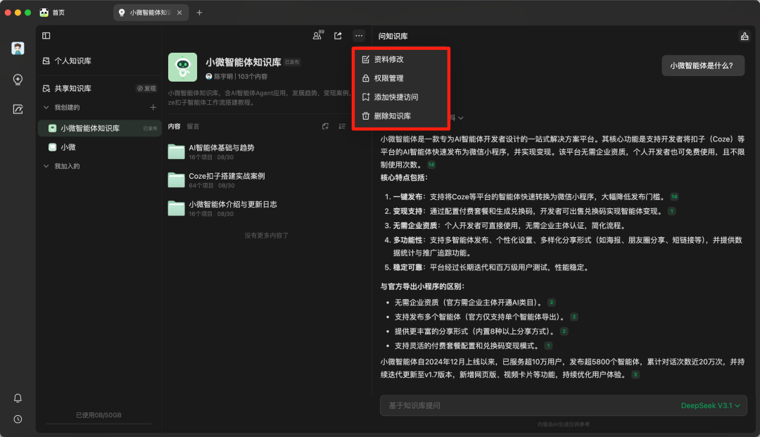 之前给我的感觉是很全面,但是一直没有起来,直到最近我用它搭建了AI智能体的知识库,才发现这个功能真强!