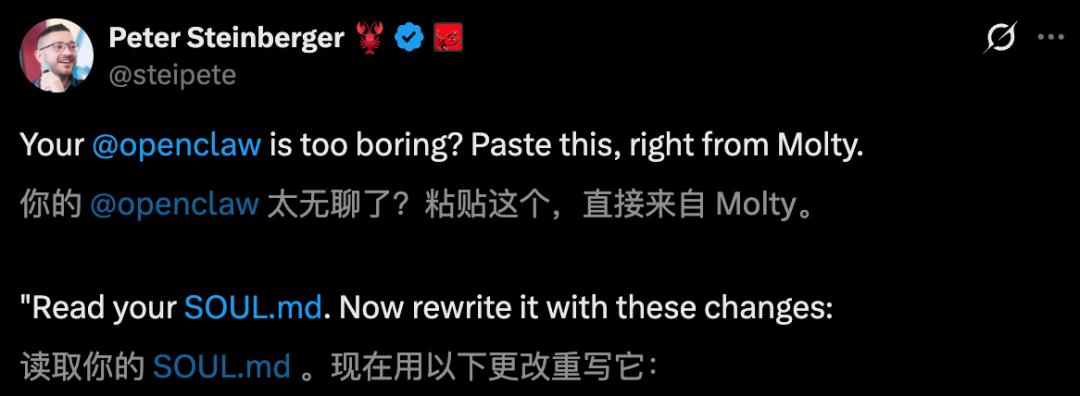 OpenClaw 之父分享灵魂改造提示词