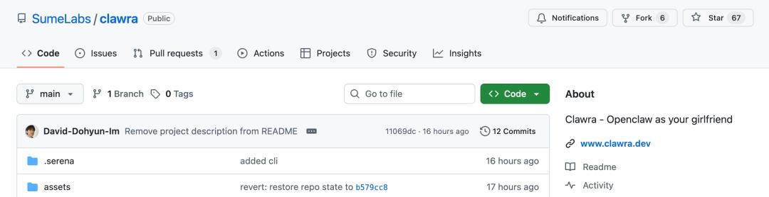 最重磅的消息是:Clawra 的项目已经在 GitHub 上开源了。