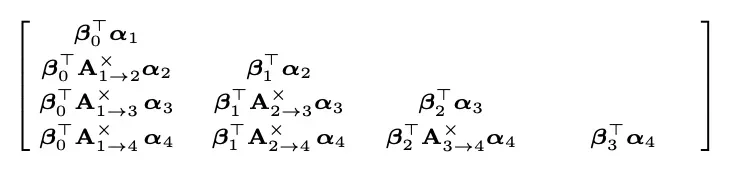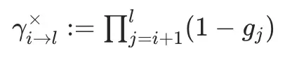 例如,2→4代表i=2,l=4,连乘计算=(1-g3)(1-g4),对应上图中矩阵的各个元素的表示方法。