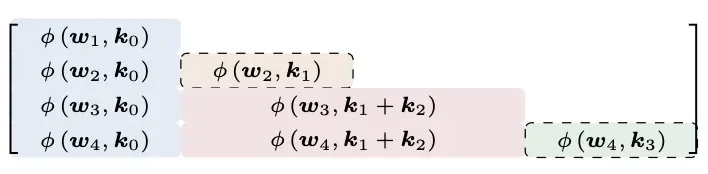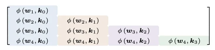 第六行,查询了原始输入+第一、第二块聚合+块内当前累加和的注意力。另外这里应有虚线框(非块内首行);
