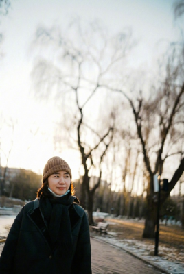 极度强调氛围感光影。加入一束明显的暖色调侧逆光(比如金色夕阳),专门照射在人物的头发上,这束光要能清晰地照亮发丝,展现出发丝的细节和光泽感,在人物周围形成一圈柔和的轮廓光,增加画面的层次感和艺术感。