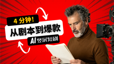 竖屏短剧是目前短视频平台变现效率最高的内容形态。以往,拍摄一部短剧需要专业剧组和高昂成本,而现在,借助 AI 的“生成力”,你一个人就能在 10 分钟内剪辑出一集具备极致反转和强视觉冲击力的爽剧。本课程将带你告别“抽卡式”生成,进入“确定性”创作时代。